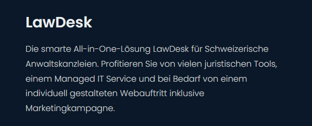 LawDesk - die smarteste IT-All-in-One-Lösung der Schweiz für Anwaltskanzleien